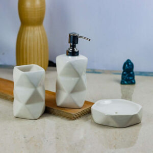 A Closer Look at Our Geometric Ceramic Bathroom Set